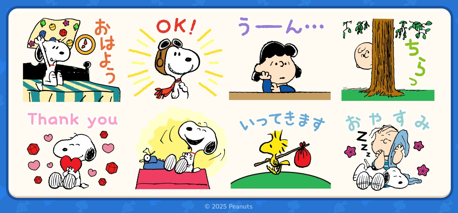 コラボレーションを記念して、ここでしか手に入らない『スヌーピー』コラボオリジナルLINEスタンプ(全8種)を配信します。入手方法については、ゲーム内のお知らせをご確認ください。
