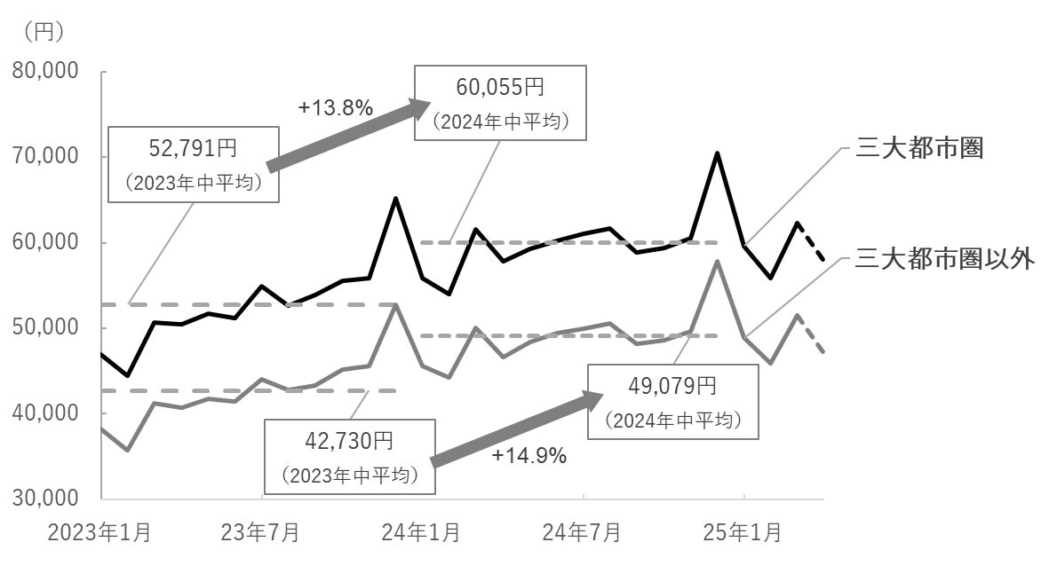 ・2023年との比較では、三大都市圏で13.8%、三大都市圏以外で14.9%それぞれ増加