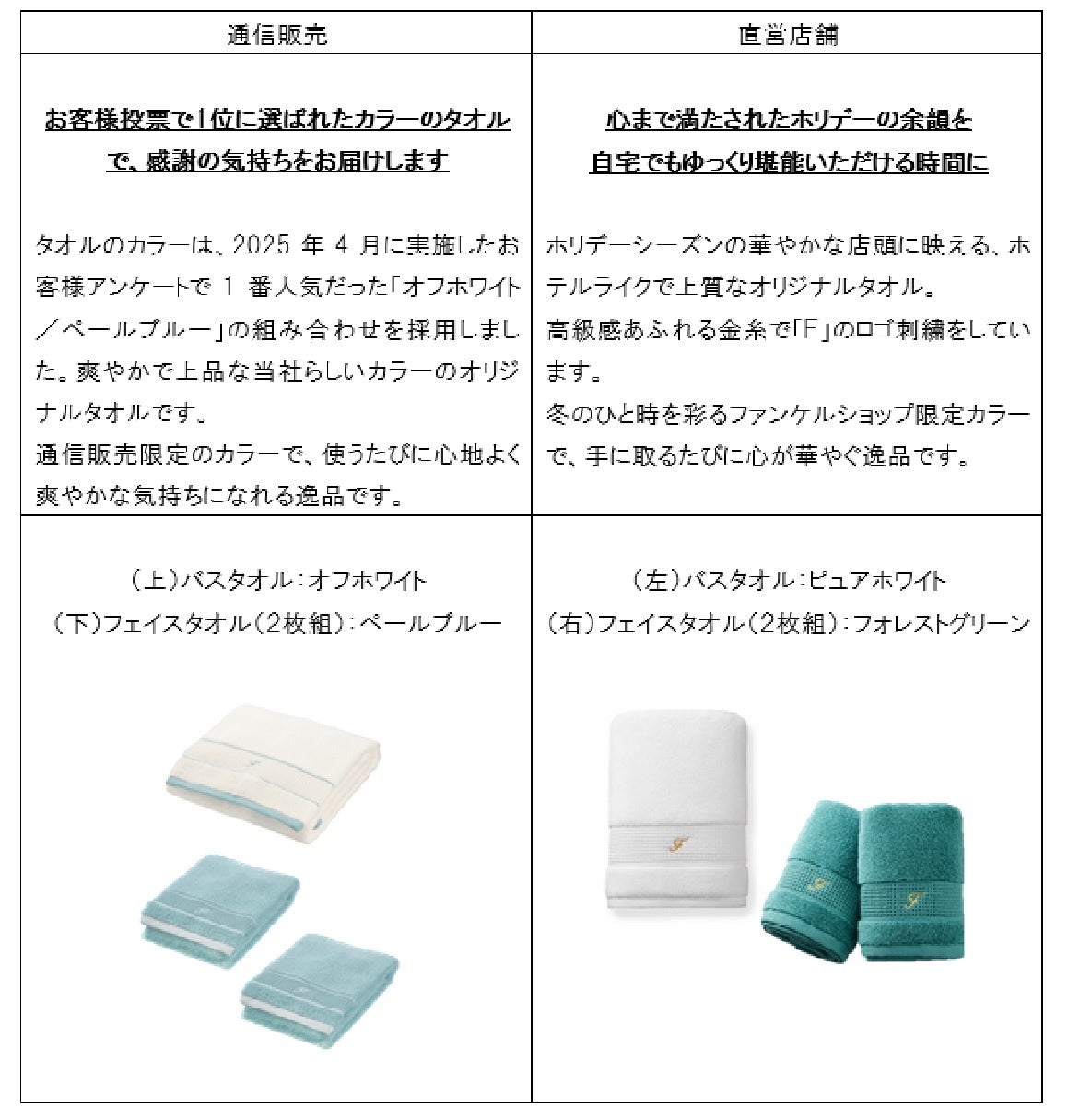 *通信販売・直営店舗でタオルのカラーが異なります