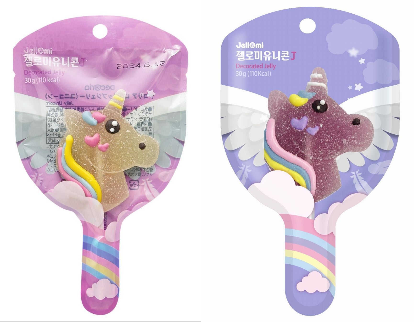 ユニコーンをモチーフにした、ハンドメイドのデコレーションが施されたグミ。カラフルなパッケージはギフトにもおすすめ。