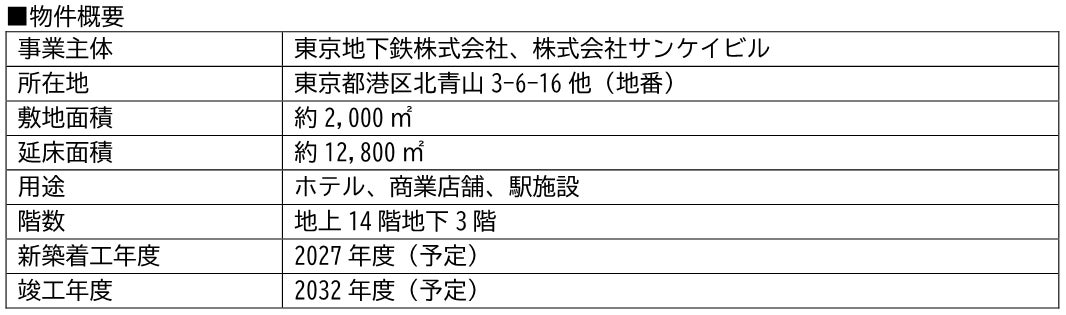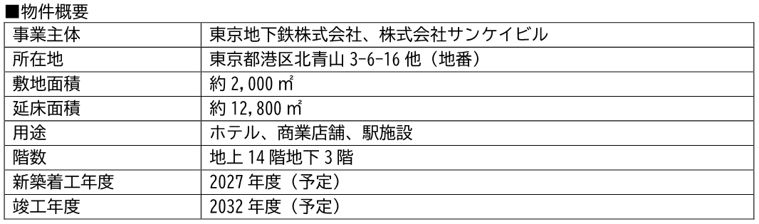 本事業は、2032年度の竣工を目標に、東京メトロとサンケイビルが連携しながら推進し、新たなランドマークとして表参道エリアのさらなる魅力向上に寄与してまいります。