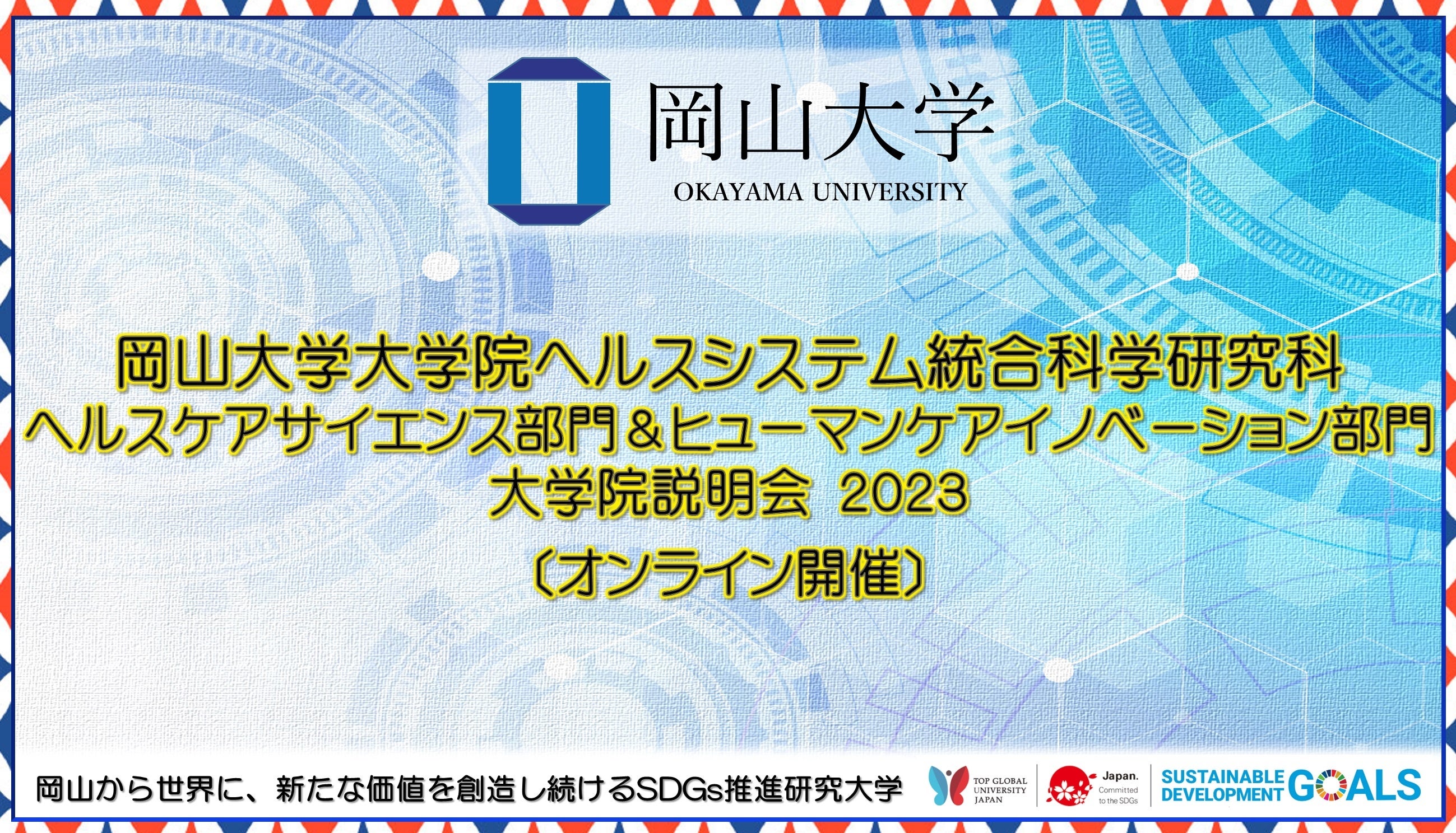 【岡山大学】大学院ヘルスシステム統合科学研究科 ヘルスケアサイエンス部門&ヒューマンケアイノベーション部門 大学院説明会2023〔オンライン開催〕
