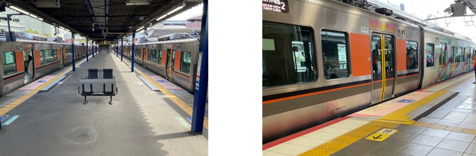 ・新大阪駅2番のりば(足元△2付近)、桜島駅1,2番のりば(足元〇7付近)の車椅子・ベビーカースペース最寄り乗降口にて検証を行います。