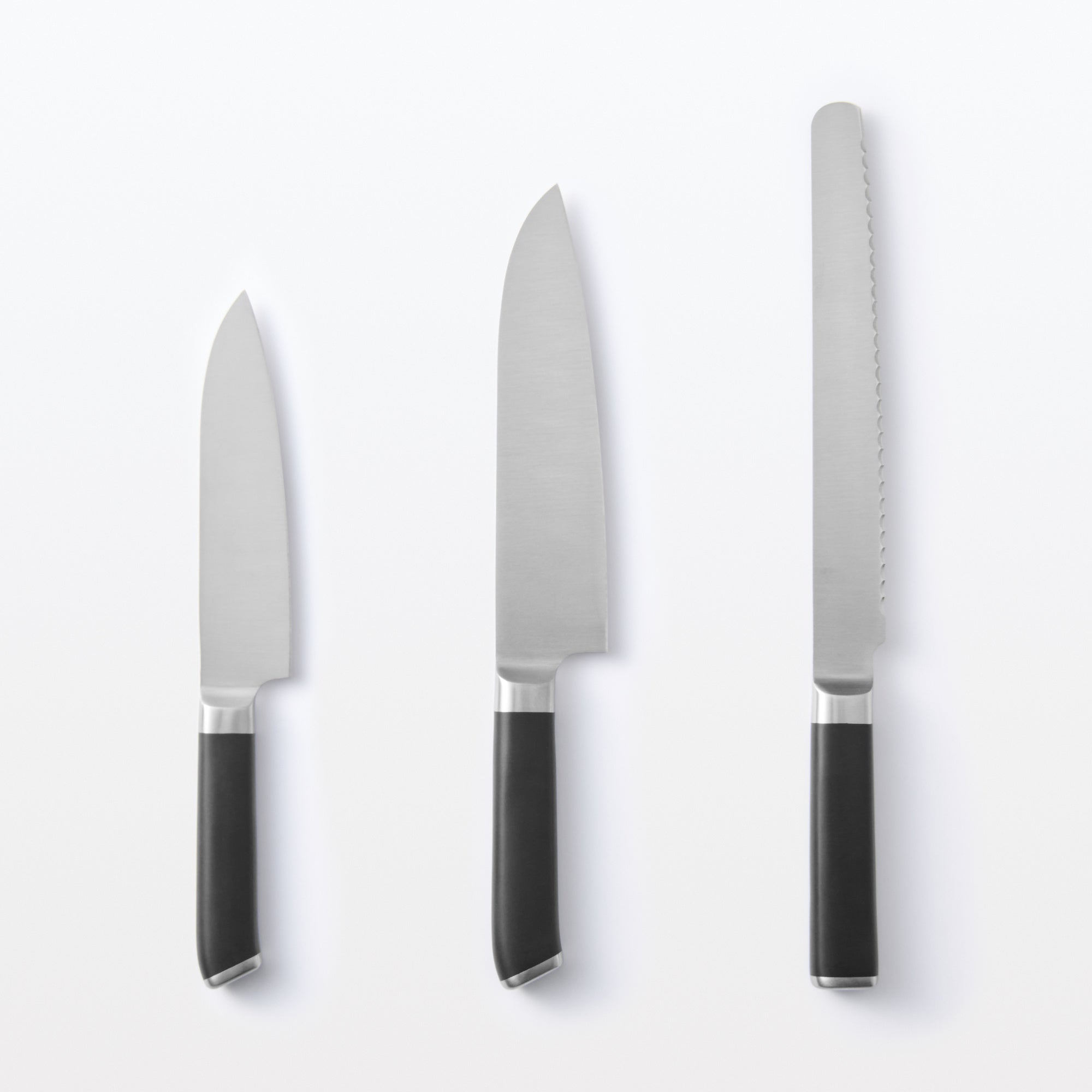 っすぐスムーズにカットできます。3種類の包丁のグリップ形状は、上部は手
