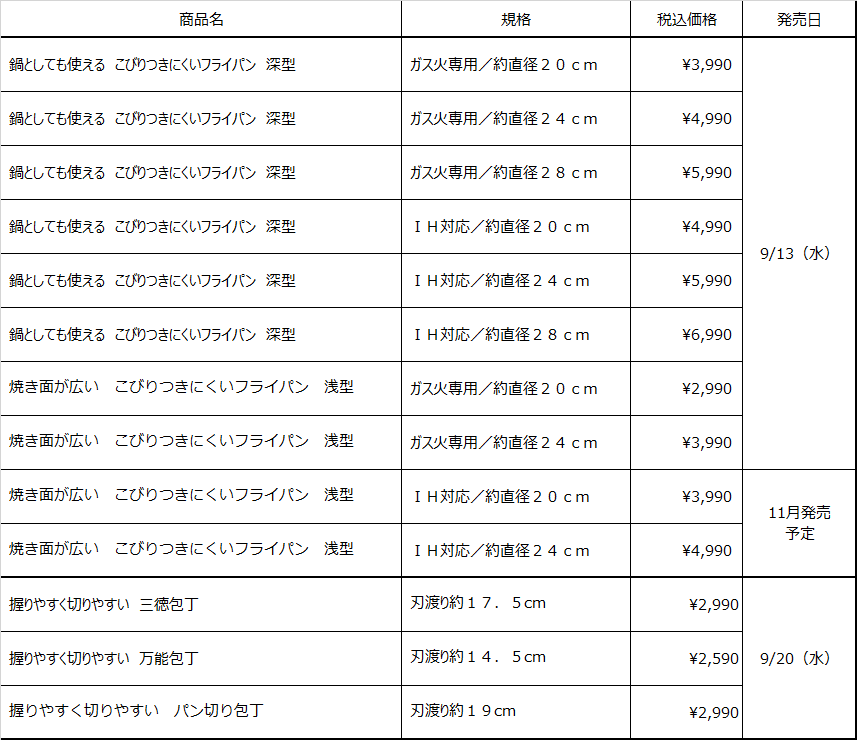 9/13(水)~ 無印良品 こびりつきにくいフライパンと握りやすく切りやすい包丁リニューアルのお知らせ