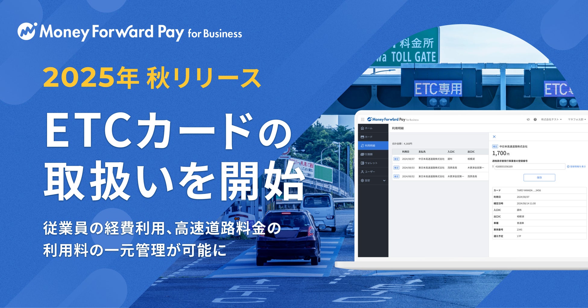『マネーフォワード Pay for Business』、2025年秋よりETCカードの取扱いを開始
