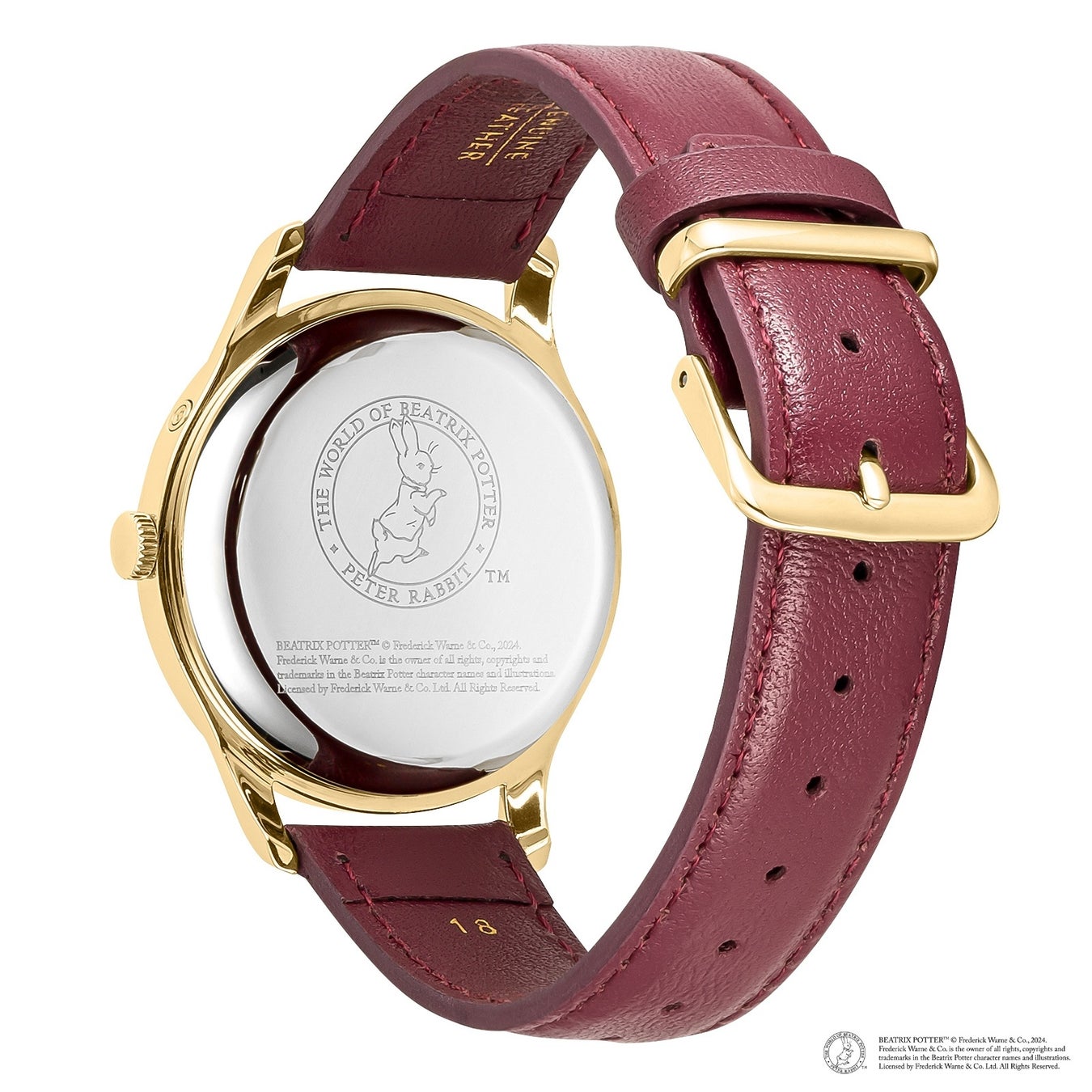文字盤にはマグレガーおじさんから逃げるピーターの姿をあしらいました。