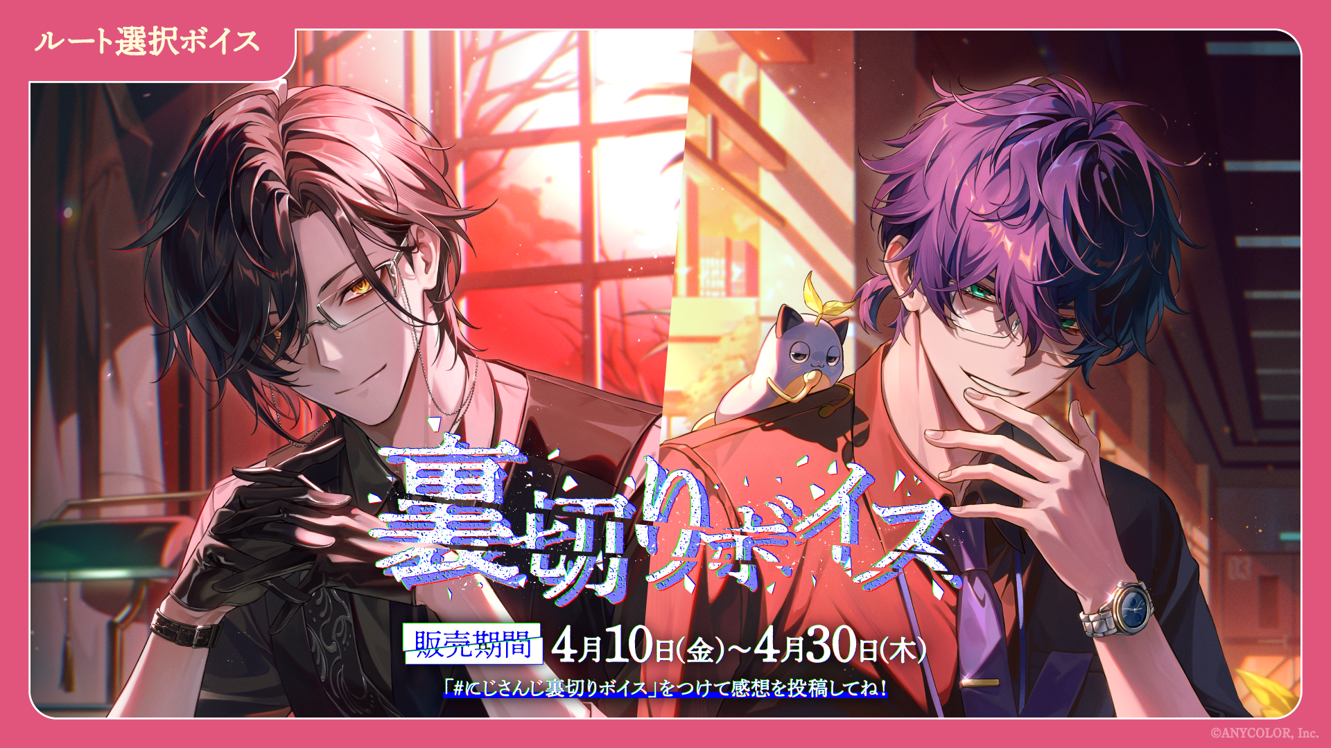 2026年4月10日(金)12時から2026年4月30日(木)23時59分までの期間、にじさんじオフィシャルストア(https://shop.nijisanji.jp)と、NIJISANJI EN Official Store(https://nijisanji-store.com)にて「にじさんじ ふたりの秘密ボイス」「にじさんじ 裏切りボイス」の販売をいたします。