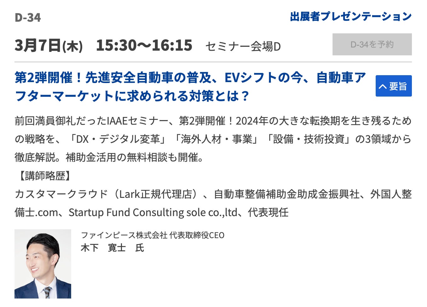 IAAE 2024(第21回 国際オートアフターマーケットEXPO 2024)でのセミナー開催が決定!先進安全自動車の普及、EVシフトの今、自動車アフターマーケットに求められる対策とは?木下寛士
