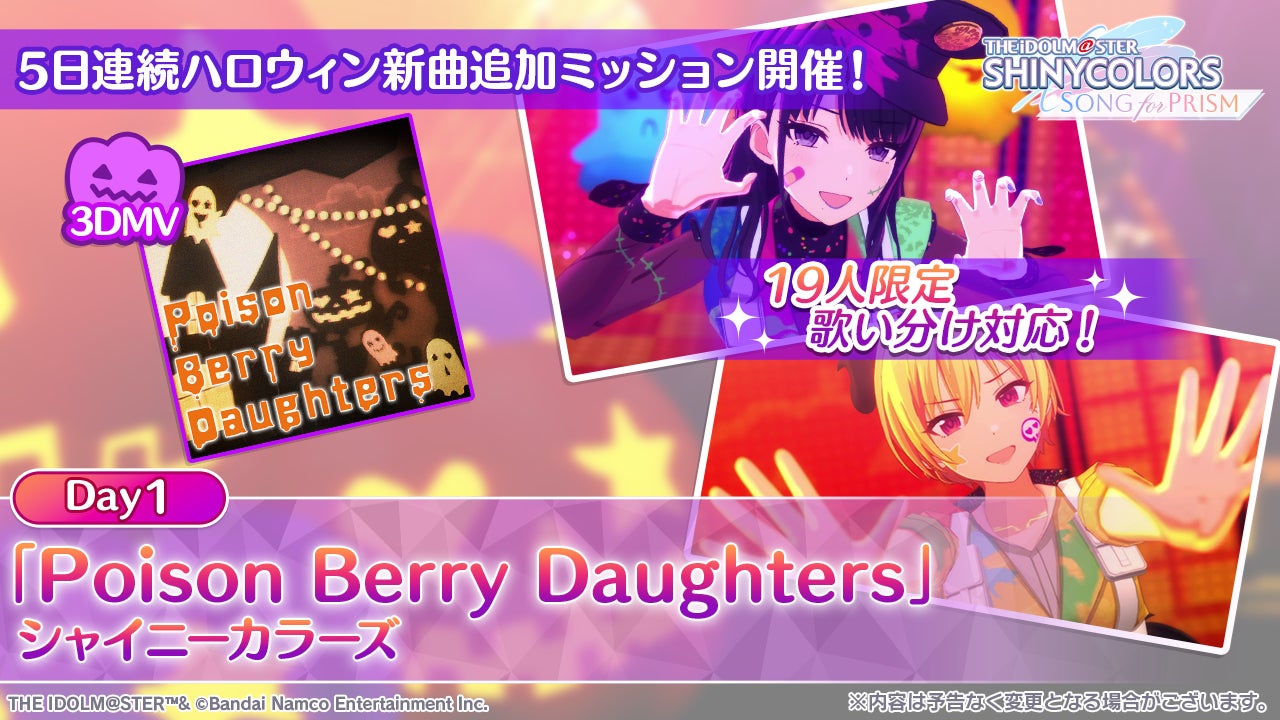 5日連続新曲リリース1日目は、シャイニーカラーズ「Poison Berry Daughters」を追加予定です。