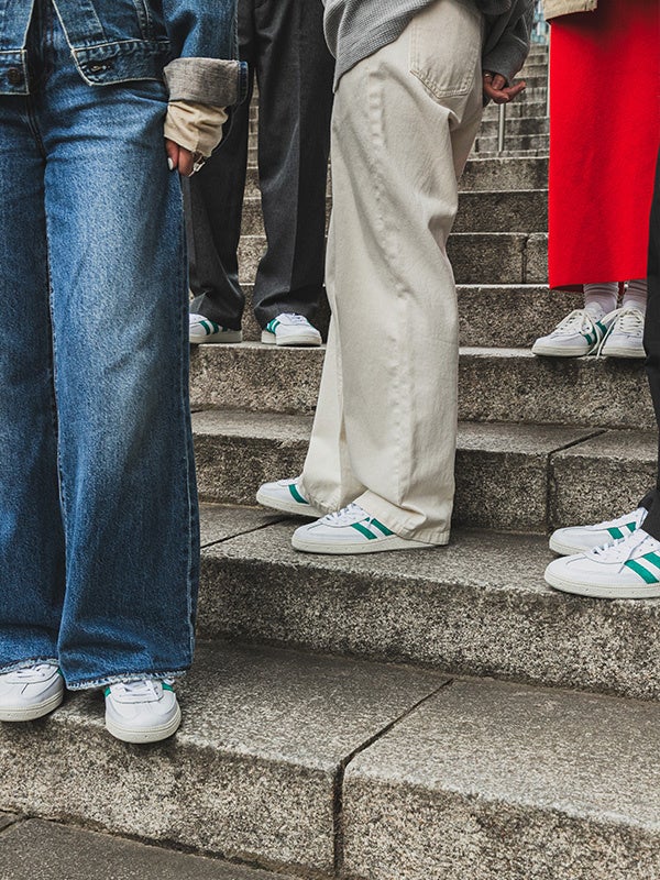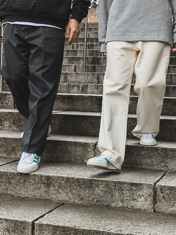 足元に添えたEquipment Greenのラインが、シンプルな装いにさりげない彩りをプラスし、カジュアルからきれいめまで幅広いスタイリングで楽しめるのも魅力です。