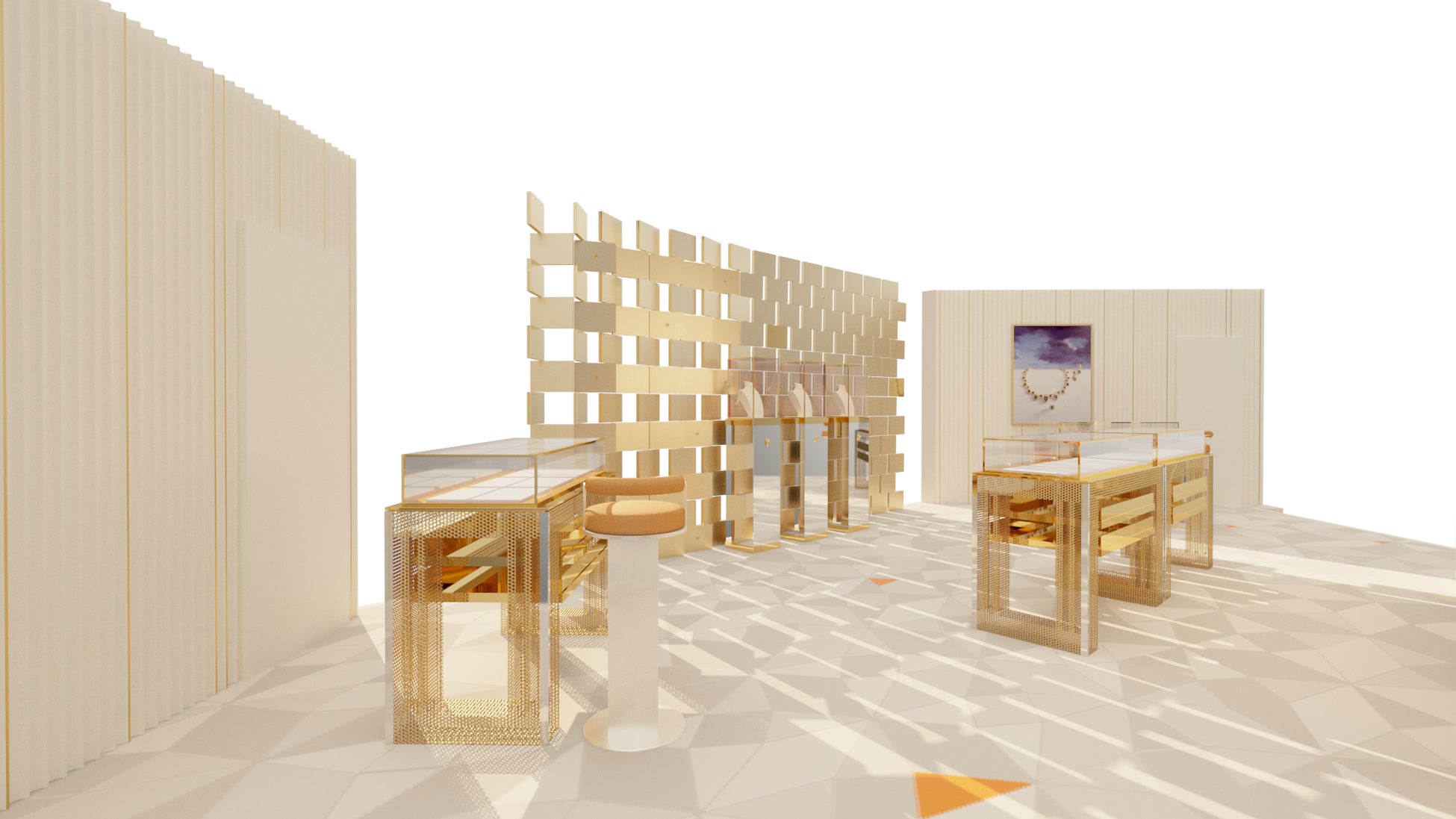 ヴィジョナリーデザインの先駆者、アイリーン・グレイへの敬意を表した魅惑的なシースルーの壁が目を捉え新鮮な驚きを与えるストアデザインが印象的なポイントとなっています。ストアの外より差し込む光が店内に美しい影を写し出します。