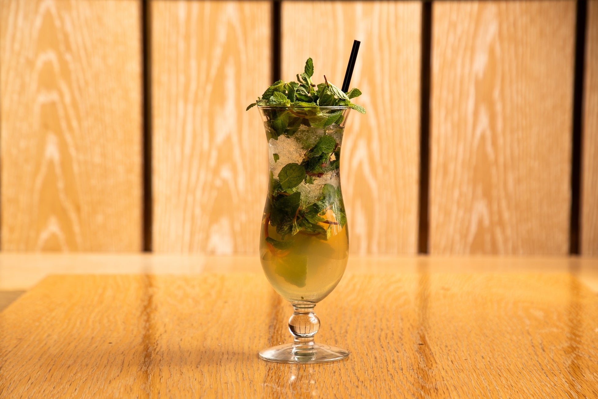 夏の王道カクテルのモヒートとビールを掛け合わせた一杯。モヒートとビール、どちらを飲んでいるか飲み方で口当たりが変化していく不思議なカクテル。