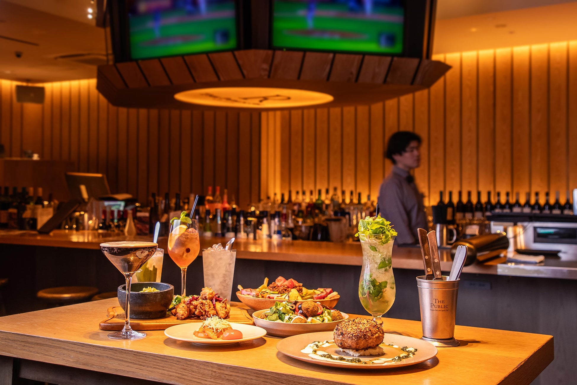 『THE PUBLIC』はジャパニーズスタイルの「ガストロパブ」と「スポーツバー」を融合した新しいナイトスポットです。料理は代表的なパブフードを国産食材でアレンジした、ご馳走感のあるPUBLICオリジナルメニューをご用意。多種多様な国産クラフトビールをはじめ国産にこだわったドリンクメニューも多数取り揃えております。普段はシックなBARの趣きを持ちながらイベント時にはエキサイティングなスポーツバーへと変化する、「静と動」を兼ね備えた他には無い空間です。美食とお酒を楽しむ場として、独自のスタイルを紡いでまいります。