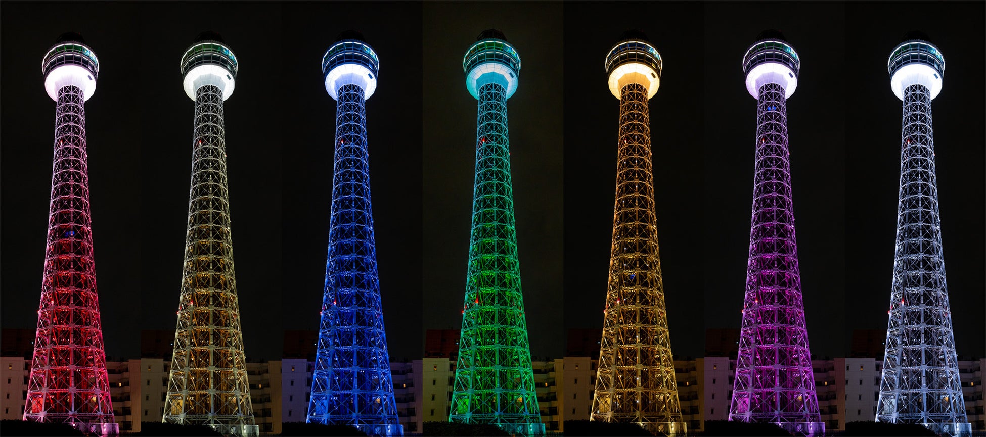 横浜マリンタワーをパウ・パトロールのキャラクターの7色のイメージカラーでライトアップします。