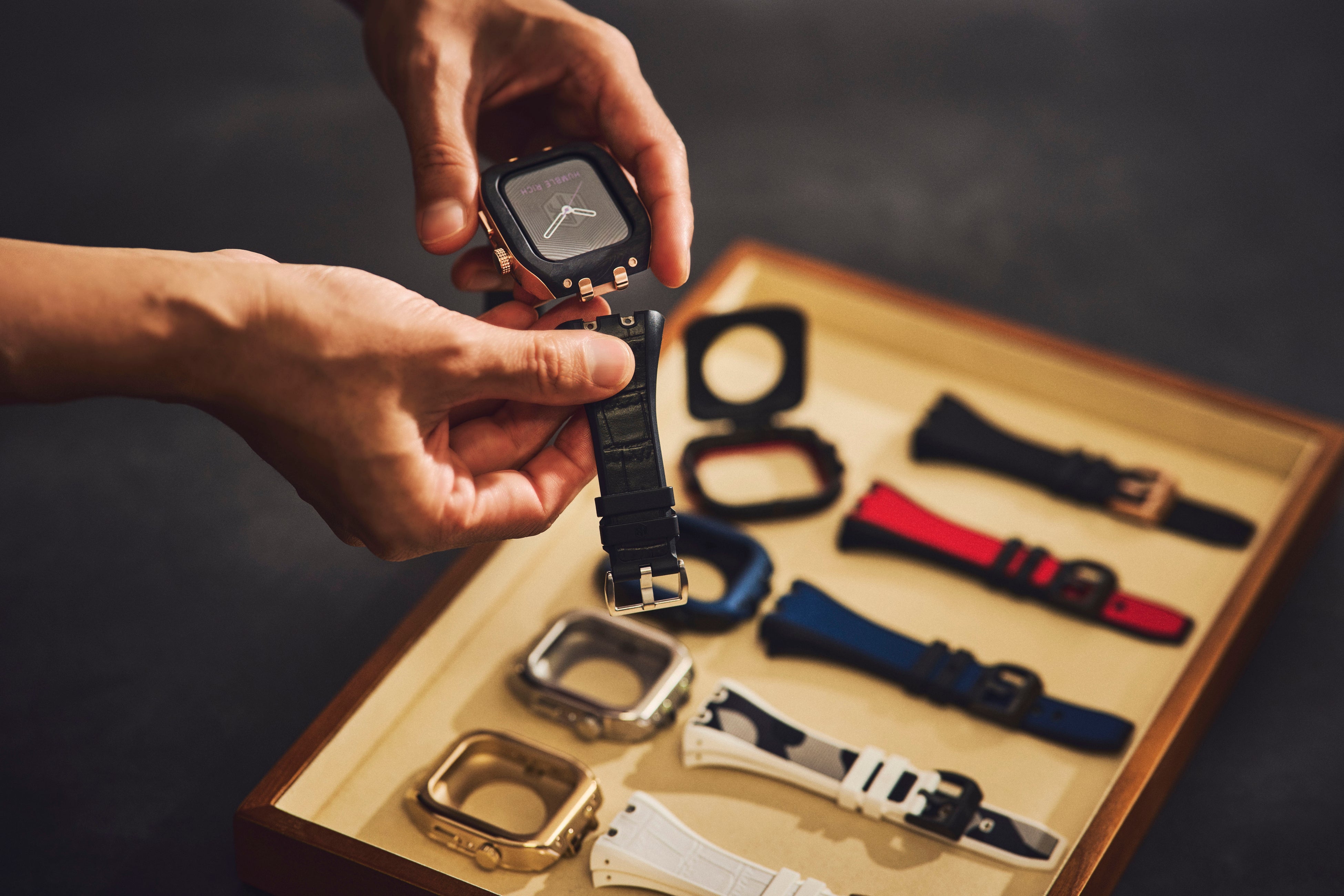 ワンタッチでケースの開け閉めができる独自の機構を備えています。工具もビスも使わず、気軽にアップルウォッチを着替えることが出来ます。また、ベルトもワンタッチで脱着可能。シーンや気分に合わせて交換出来ます。