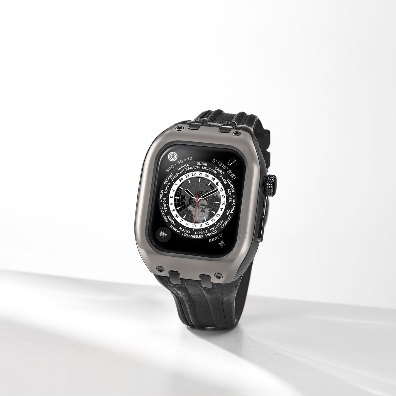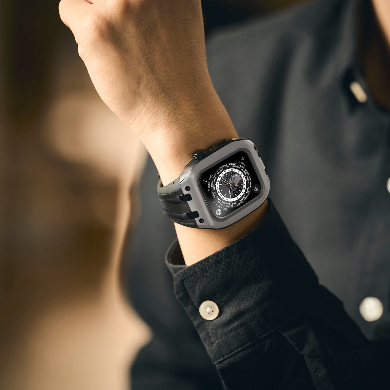 アップルウォッチSeries9/8/7に対応した新作。ベゼルをマットに仕上げ、無機質で洗練された印象にアップデート。大人の品格を感じさせてくれます。