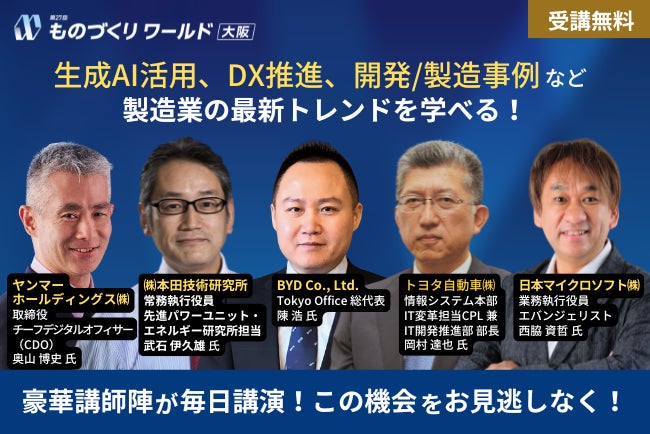 【今週開催】 トヨタ/ホンダ/日産/マツダ/ヤンマー/BYD/日本マイクロソフト 等が登壇!製造業の最新トレンドを学べる無料セミナーを開催 @インテックス大阪