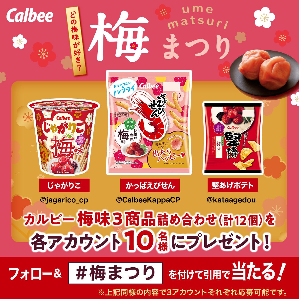 ■賞品:『かっぱえびせん 紀州の完熟梅味』『じゃがりこ 梅味』『堅あげポテト 梅味』詰め合わせ12個