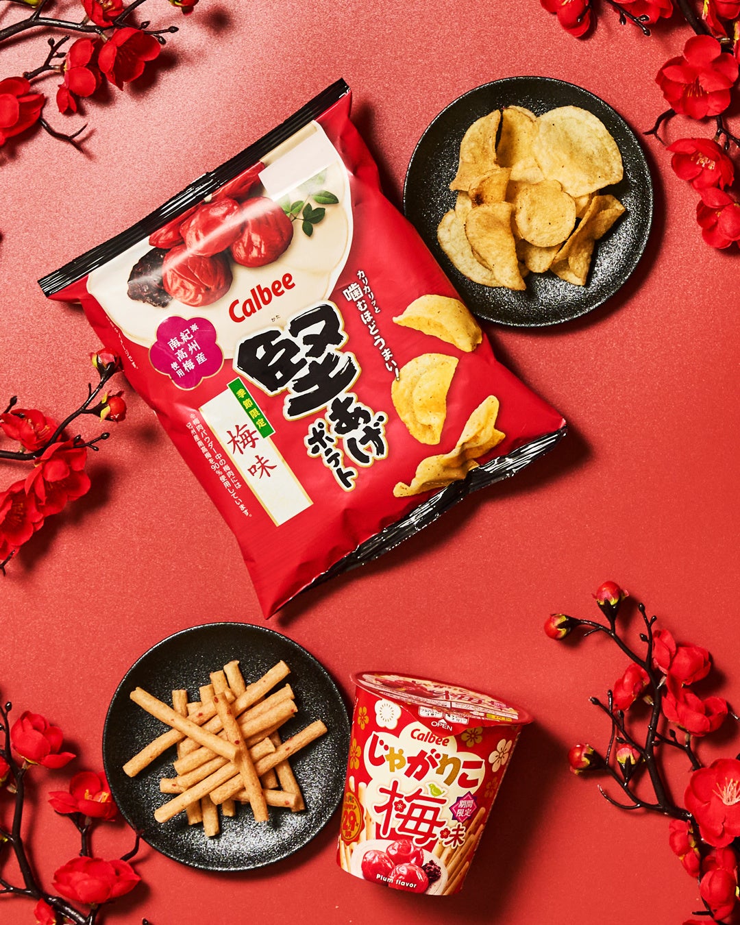 カルビーでは、毎年、梅の開花時期(1~2月)に合わせて、春の訪れを感じられる梅味の新商品を発売しています。