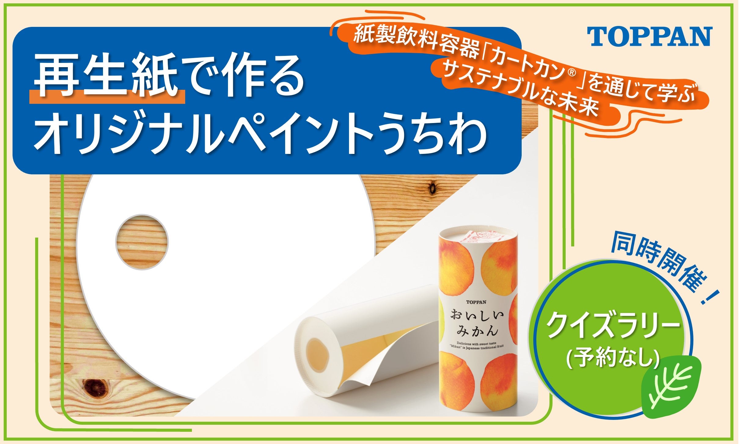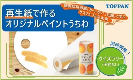 今回TOPPANは、牛乳パックを含む古紙を使った再生紙からできたうちわに、役目を終えた化粧品から生まれた絵の具や、台紙をリサイクルできるシールなどでデザインする体験コンテンツや紙製飲料容器「カートカン🄬」にまつわるクイズラリーなどを提供。参加した子どもたちは、これらを通じて楽しく「環境問題」を学びました。また、当日は「カートカン🄬」の無料配布を実施。TOPPANの環境配慮型パッケージについて多くの来場者と語り合う機会を創出しました。