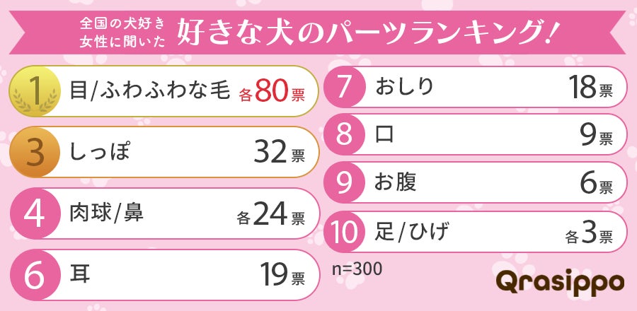 今回は、全国の犬好きな女性300人に「好きな犬のパーツ」についてアンケートを実施しました。