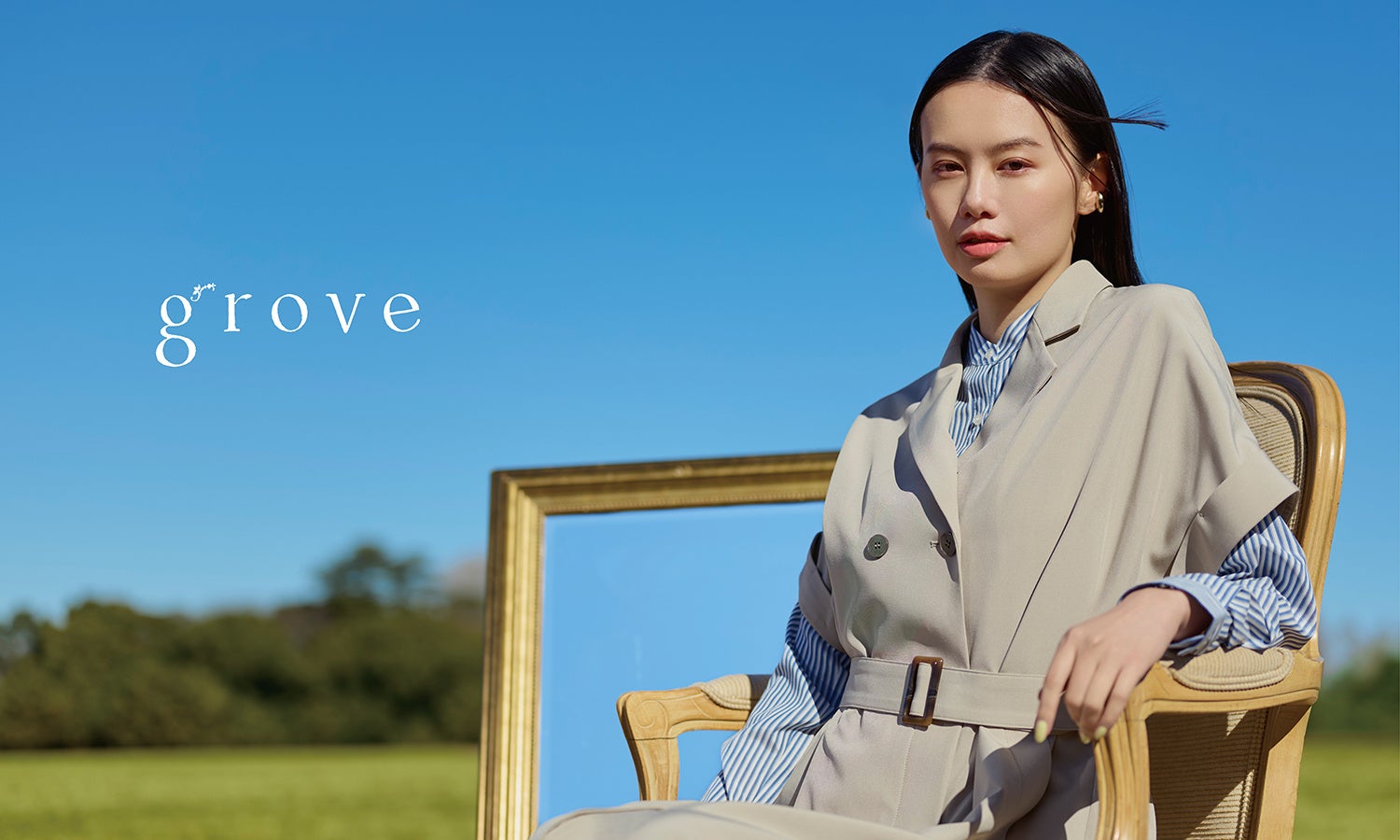 全国のショッピングセンターを中心に、オフィスシーンからデイリーまで活躍するフェミニンカジュアルを展開するブランド「grove(グローブ)」は、幅広い女性に支持される着回し力の高いトレンドアイテムを多数ご提案しております。