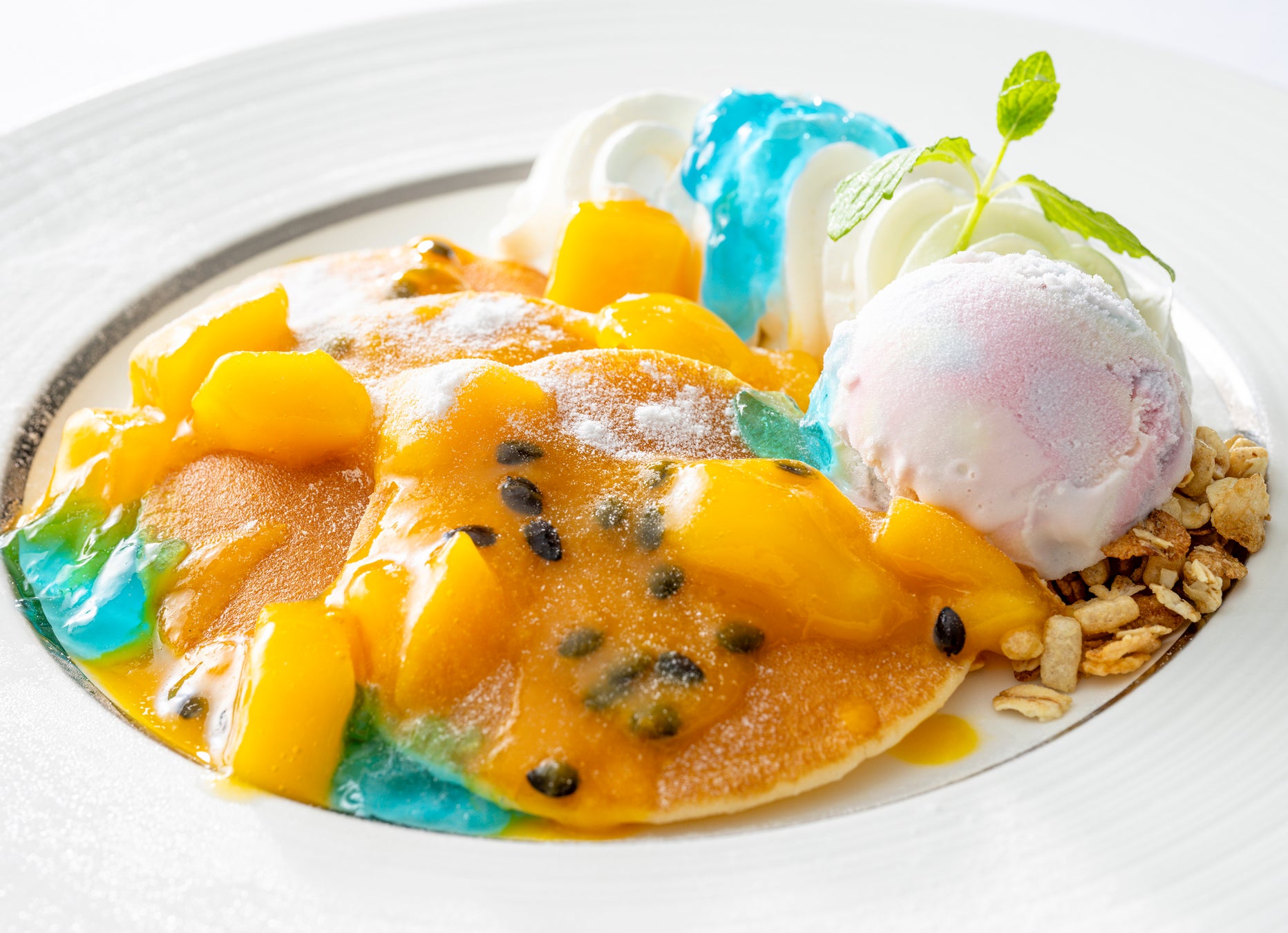 パッションフルーツ&マンゴーの夏色パンケーキ 750円
