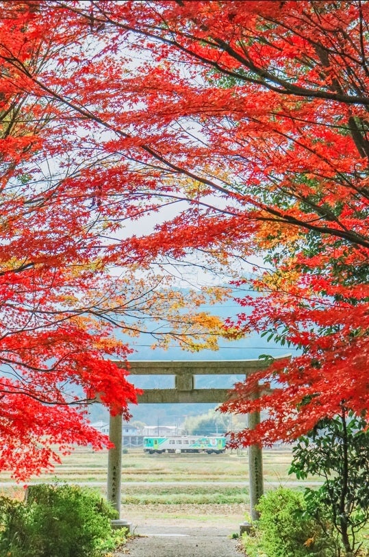 | 選者からのコメント 鳥居、紅葉と列車の取り合わせは日本の鉄道風景ですね。シャッターを切るタイミングが難しいところ、上手く収めました。縦位置の構図にしたことも良いです。季節を変えて狙うのも楽しいですよ。 |