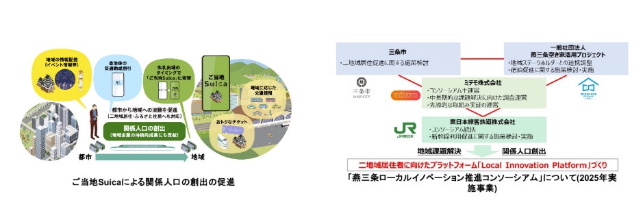 今後は、「二地域居住」に不可欠な移動を担うJR東日本とJALとが連携することで移動負担の軽減を図るほか、二地域居住の推進を図る自治体と連携しながら、2027年春より開始する「ご当地Suica」を活用して二地域居住者(ふるさと住民)を対象とした独自サービスや地域の助成割引等の支援メニューの拡充を進めます。