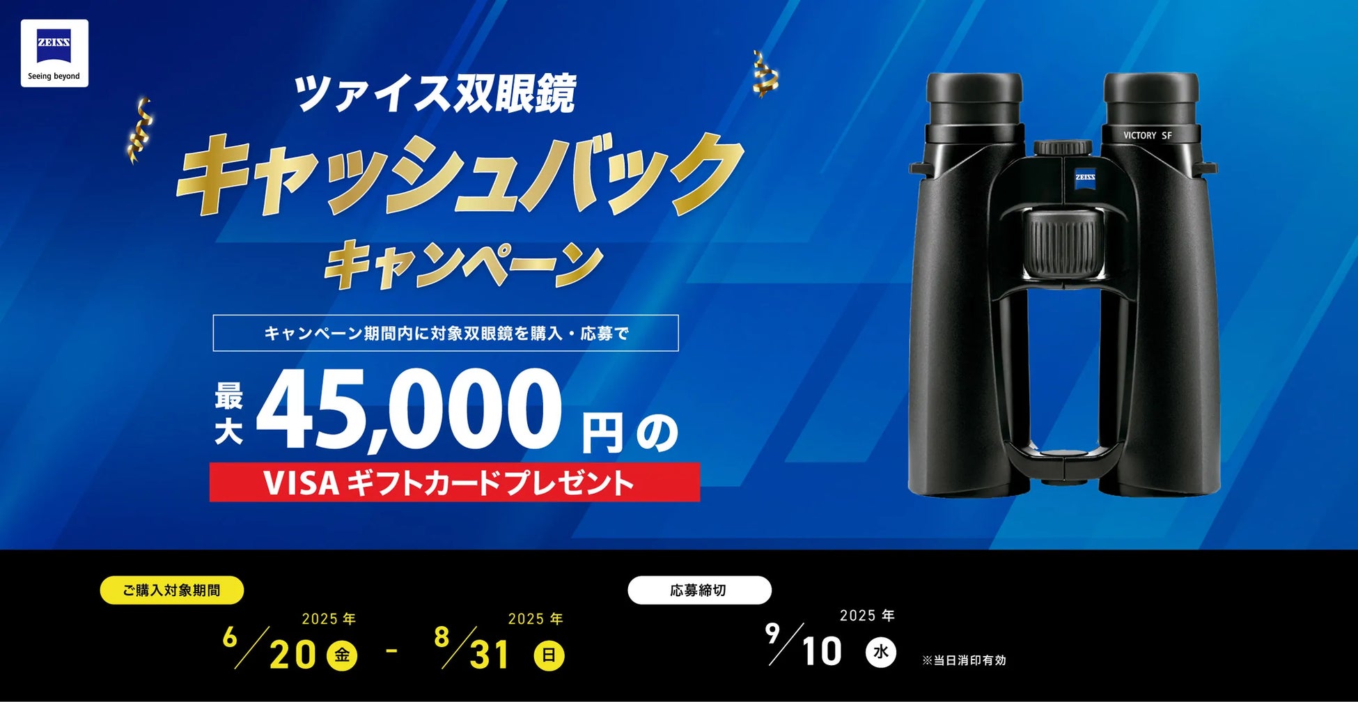 ツァイス双眼鏡キャッシュバックキャンペーン実施のお知らせ(2025年6月20日~2025年8月31日)