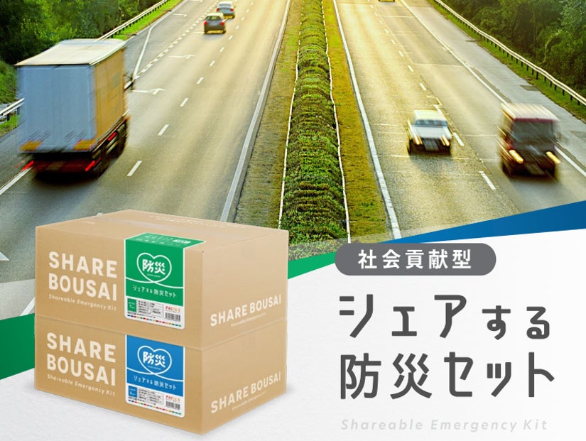 車両に30人分のシェアする防災セットを備えることで、大渋滞や豪雪、地震などの災害時にドライバーだけでなく、周囲の方々への「共助」にも。社会貢献活動の一助に。