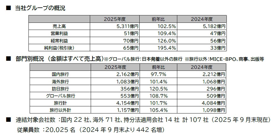 * 法人領域: 「教育」「企業」マーケットでの課題解決型提案が奏功し、前年実績を大きく上回る水準を達成しました。2026年3月開催のWorld Baseball Classic公式ホスピタリティ&トラベルプログラムの企画・運営・販売権利を獲得し、スポーツ・エンタテイメントビジネスの強化を推進しました。