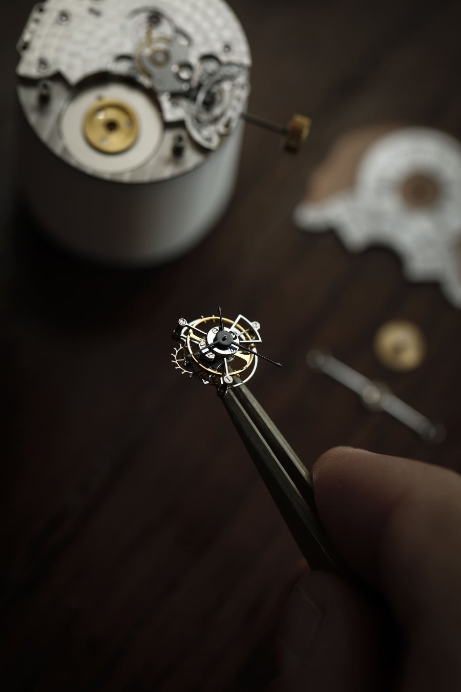 ミシェル·ナバスとエンリコ·バルバシーニがデザインしたDR001には、伝統的なハイウォッチメイキングを彷彿させる要素がふんだんに盛り込まれています。このムーブメントは「トゥールビヨン スースクリプション」では隠れていましたが、今回は細部にいたるまで鑑賞することが可能に。