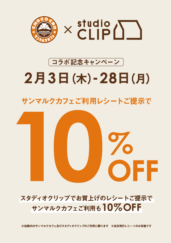 対象店舗:studio CLIPとサンマルクカフェが同じ施設にある65店舗対象