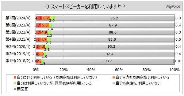 マイボイスコム株式会社(東京都千代田区、代表取締役社長:高井和久)は、7回目となる『スマートスピーカー(AIスピーカー)』に関するインターネット調査を2024年4月1日~7日に実施しました。