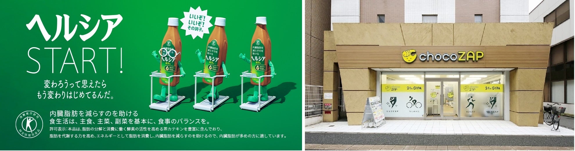 ヘルシアとchocoZAPが「運動」と「飲料」で「無理なく」「継続的に」「簡単に」健康支援 ~ジム+ヘルシアで新提案 日々のヘルシーな生活を応援!~