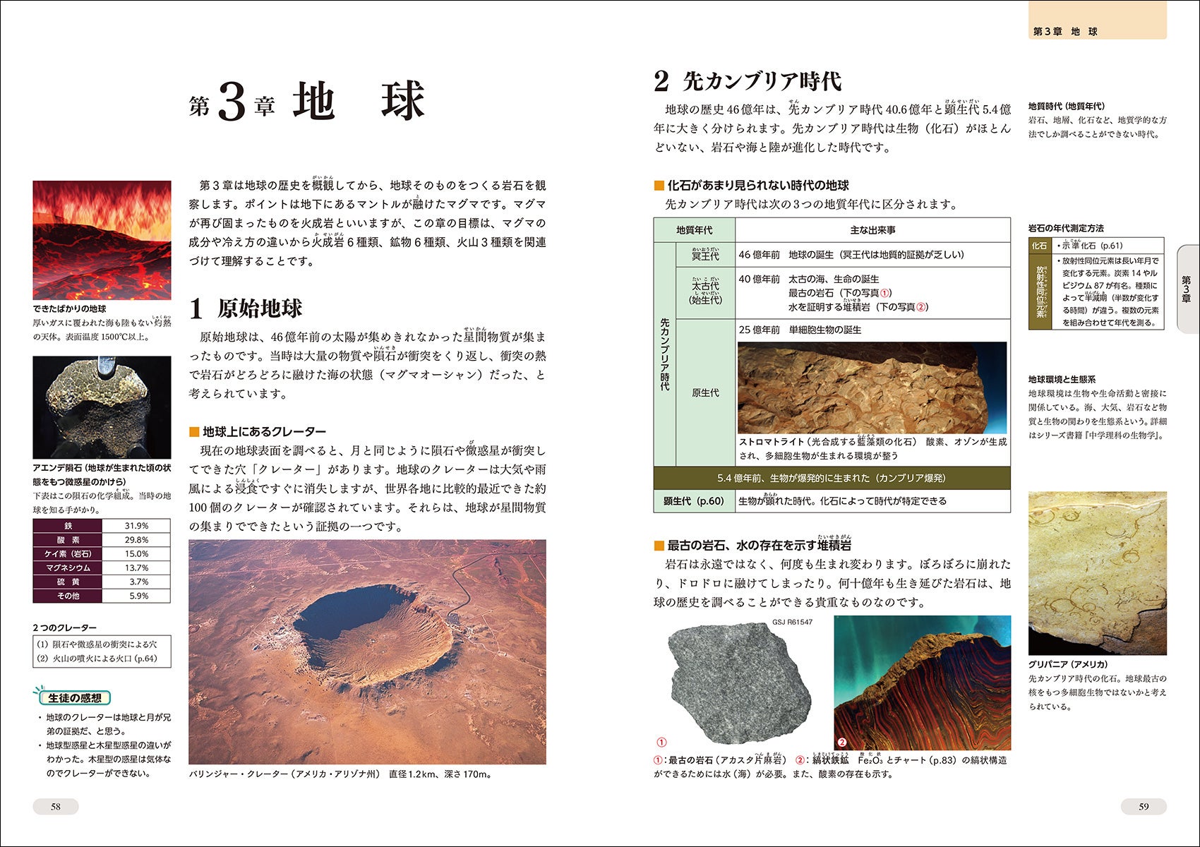 【新学習指導要領対応】中学3年間で学ぶ地学がこの1冊に。観察例を豊富に収録し、探究力をのばします。