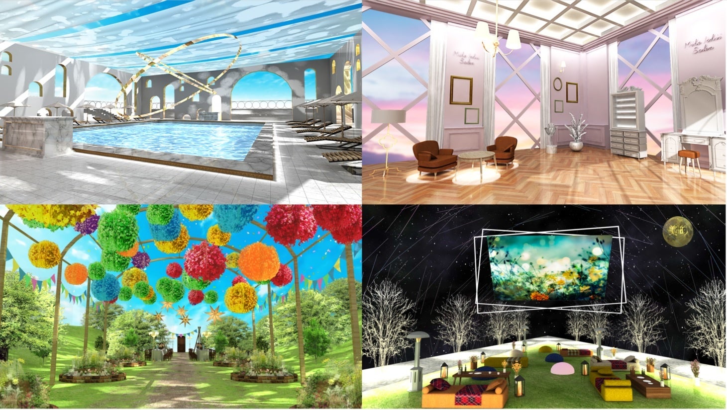 美的公式キャラクター・美的子ちゃんのアバターがガイド役となって空間をご案内し、美的インスタライブでお馴染みの編集部員のアバターがベストコスメ受賞アイテムを解説します。また、大人気美容家・石井美保さんも登場し、厳選したおすすめアイテムをご紹介いただきます。