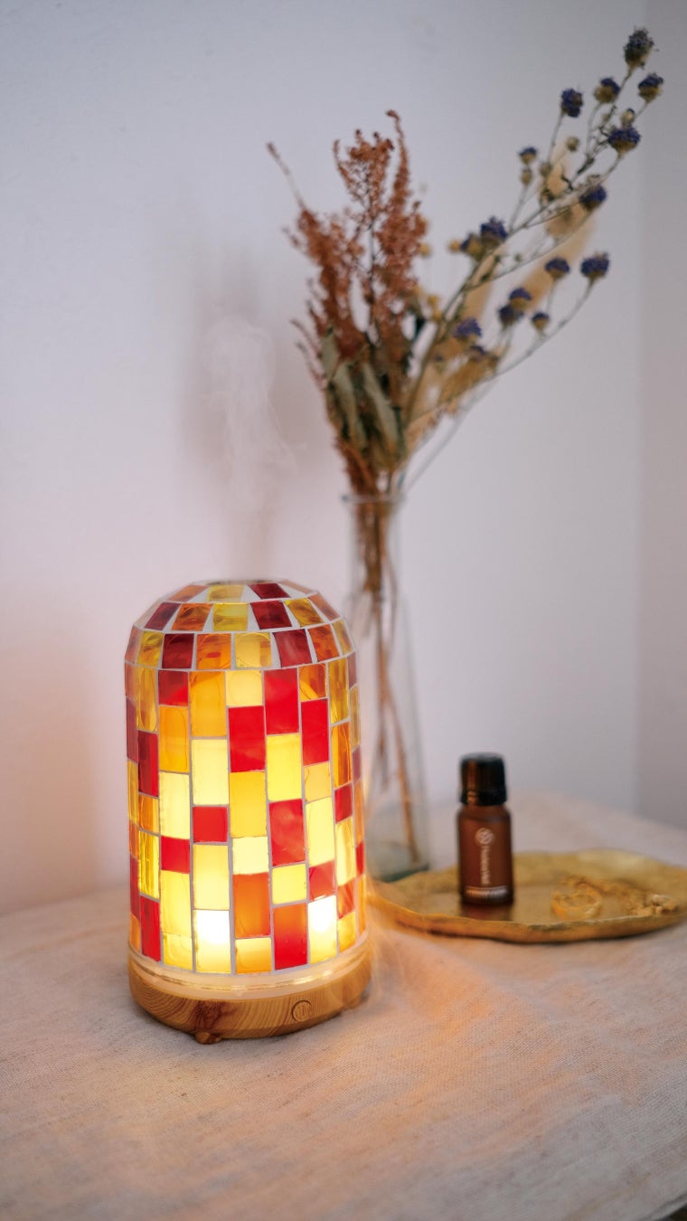 レトロなモザイクランプ型で、ガラス越しの優しい光を演出。寝る前の使用時に役立つオートオフモードを搭載。