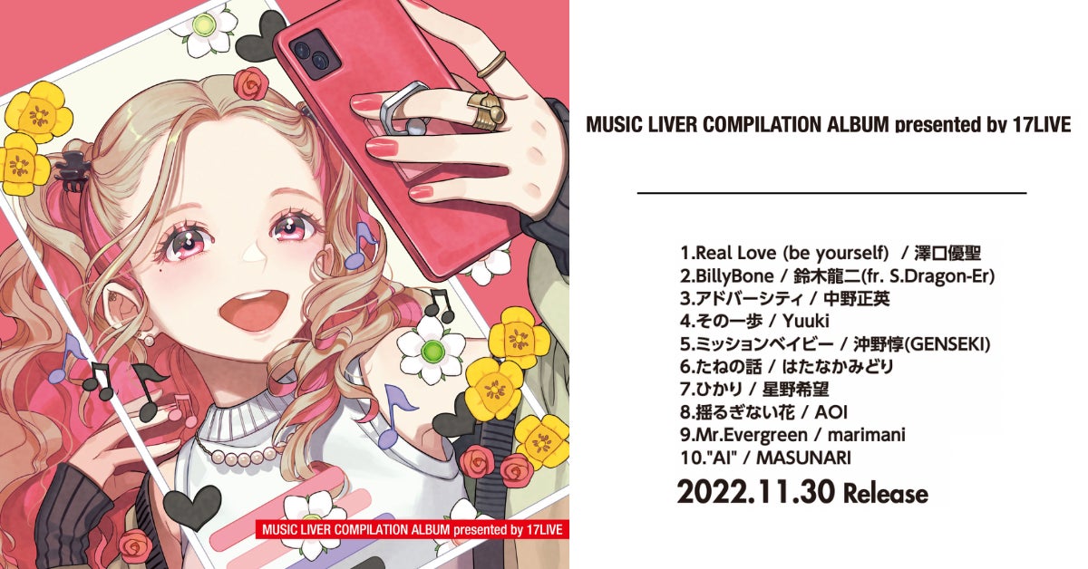 “17LIVE初”の公認CDとなるオフィシャル音楽ライバーコンピレーションアルバム『MUSIC LIVER COMPILATION ALBUM presented by 17LIVE』発売決定