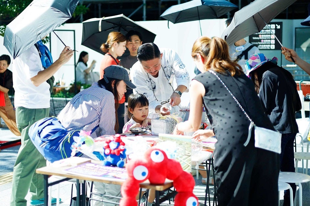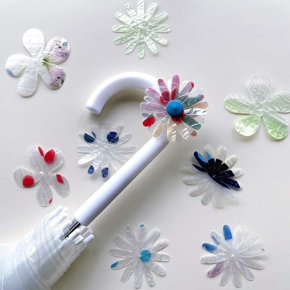 年間約8千万本も消費され、その多くが半年以内には廃棄されてしまう身近なビニール傘から作成した再生生地を活用し、小さな白い花を咲かせ、雨に濡れると透明になる多年草「山荷葉(英名:umbrella leaf)」から着想したアップサイクルフラワーを開発。イベント会場や商業施設で空間演出やアートを展示する等、「アップサイクル×アート」を通じて、環境課題の興味関心に繋げることとしている。また、同様の素材から、傘の取り違えや紛失を防ぎたいときにおすすめのアンブレラマーカーをつくるアップサイクルワークショップを開催し、啓発を行っている。