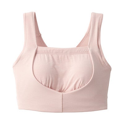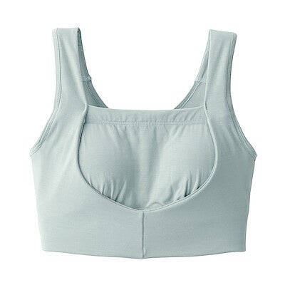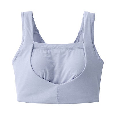 婦人インナーの「なめらか」シリーズと同じユーカリを主原料とした天然由来の再生繊維リヨセルを使用したしっとりなめらかで肌あたりのよい素材です。伸縮性のある生地で程よいホールド感の快適な着け心地です。また、ノンワイヤー仕様で、肩の負担を少なくするようストラップ幅を太くしています。パットは取り外しできるため、お好みに応じてパット無しでも使用することができます。