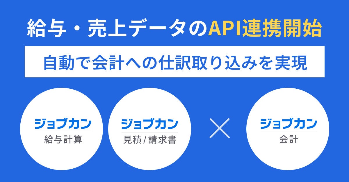 給与支給額・売上金額を自動で取り込み会計業務を効率化!クラウド型会計シソフト『ジョブカン会計』が『ジョブカン給与計算』『ジョブカン見積/請求書』とAPI連携を開始