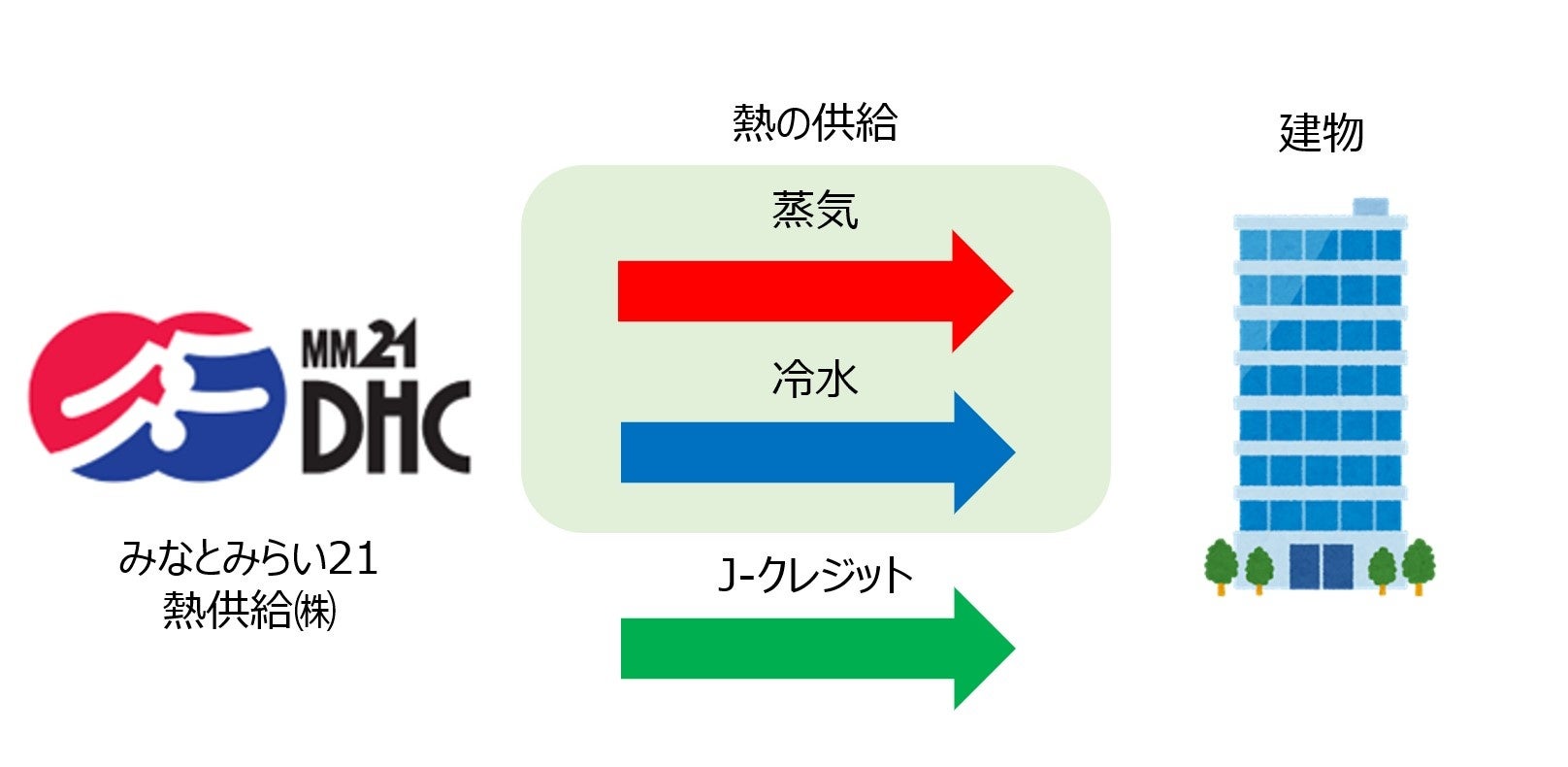 みなとみらい21中央地区は、国内最大級の地域冷暖房エリアとして、各建物で冷暖房用の熱(冷水・蒸気)を利用しています。本取組は、J-クレジットなどを活用してカーボン・オフセットを行うことで、熱の利用に伴うCO2排出量を実質ゼロにします。