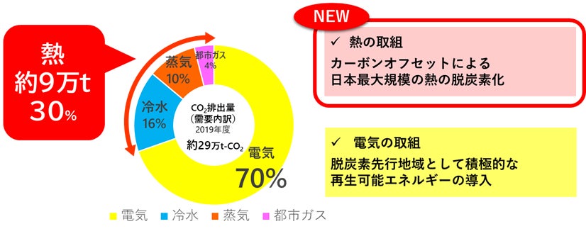 この度、地区一体となり、熱の使用に伴うCO2排出量(令和6年度分)を約18,000t削減する、熱エネルギーの脱炭素化としては日本最大規模の取組がスタートします。