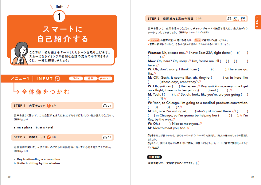 多彩なシーン・ジャンルの音声を素材に、世界で今使われている英語を学び、小さなSTEPを追いながら学習を進めることで、徐々に「聞けるようになっている」ことを目指します。