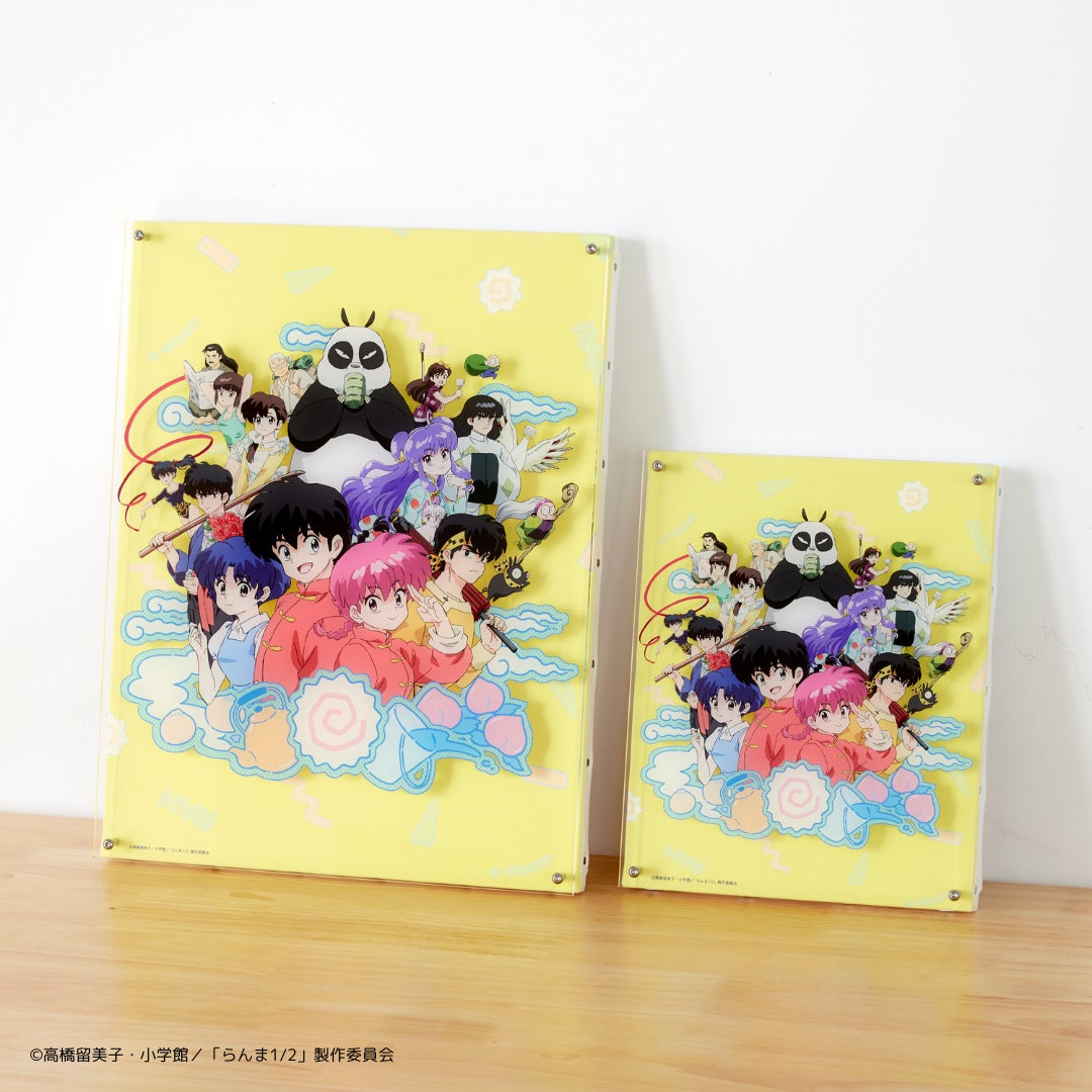鮮やかな色彩と繊細なディテールで表現されたTVアニメ『らんま1/2』のメインビジュアルを、奥行きのある立体アートボードで再現。背景とのコントラストを活かしたレイヤード構造により、キャラクターの存在感をより一層際立たせる仕様になっています。