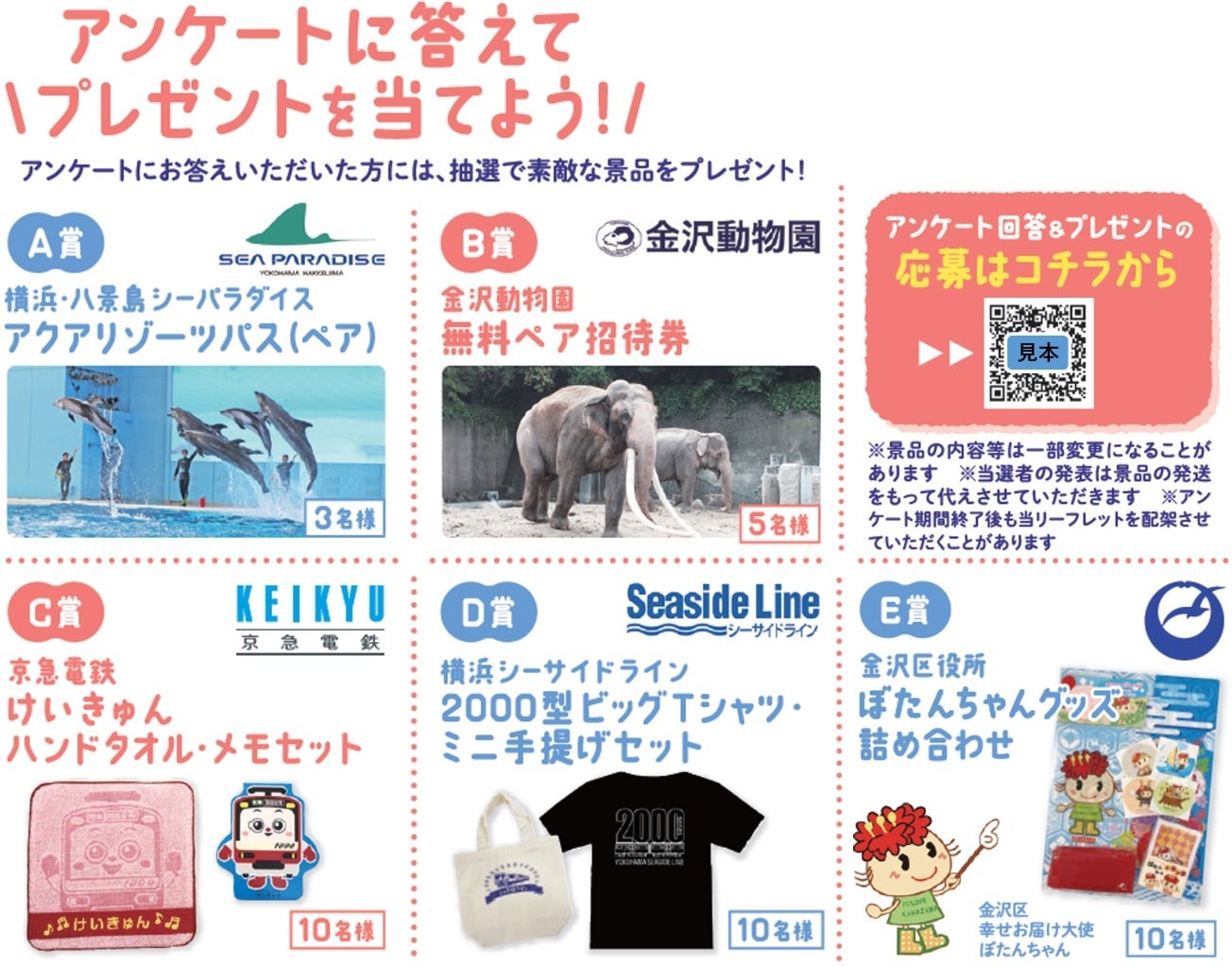 リーフレットに掲載のアンケートにお答えいただいた方に、抽選で金沢区ゆかりのプレゼントが当たるキャンペーンを実施します。