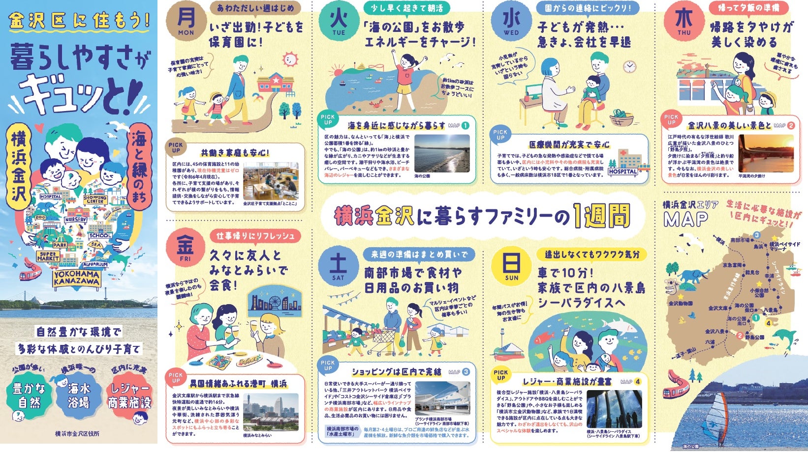 金沢区は、海や観光地としてのイメージに加え、自然豊かな環境や充実した施設など、「暮らす場所」としても魅力にあふれたまちです。そこで今回、特に子育て世代の具体的な暮らしに焦点をあてた発信を行うことで、金沢区を居住地の選択肢の一つに入れていただくことを目指します。